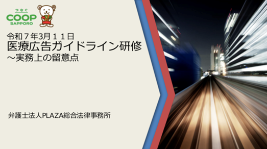 「手稲渓仁会病院」や「札幌西円山病院」など病院や介護施設などを運営する渓仁会グループで出張研修講座「医療広告ガイドライン研修〜実務上の留意点」を実施してきました。